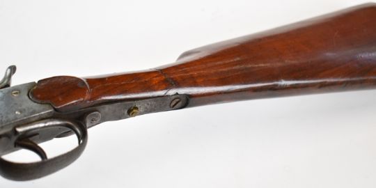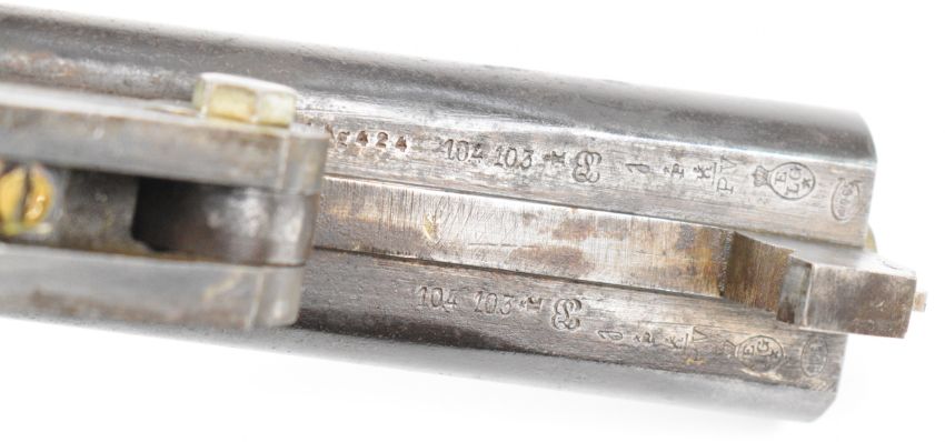 Belgian .410 side by side hammer action folding poacher's shotgun with double trigger and 29.5 inch barrels, overall length 112.5cm, length of pull 35.5cm, serial number NVSN. PLEASE NOTE THAT A VALID RELEVANT SHOTGUN CERTIFICATE IS REQUIRED TO VIEW OR PURCHASE THIS LOT AND FOR ALL SHOTGUNS OR RIFLES PLEASE ENSURE YOU HAVE THE RELEVANT CERTIFICATE BEFORE BIDDING.