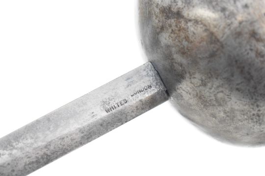 English cup hilt rapier marked Whites London to 80cm double edged blade. PLEASE NOTE: WE ARE NOT ABLE TO OFFER OUR USUAL POSTAGE SERVICE FOR THIS LOT