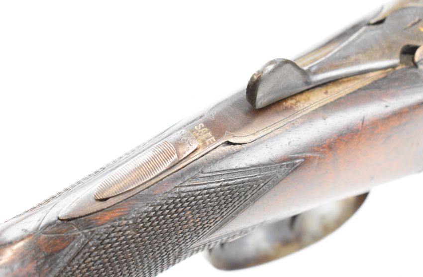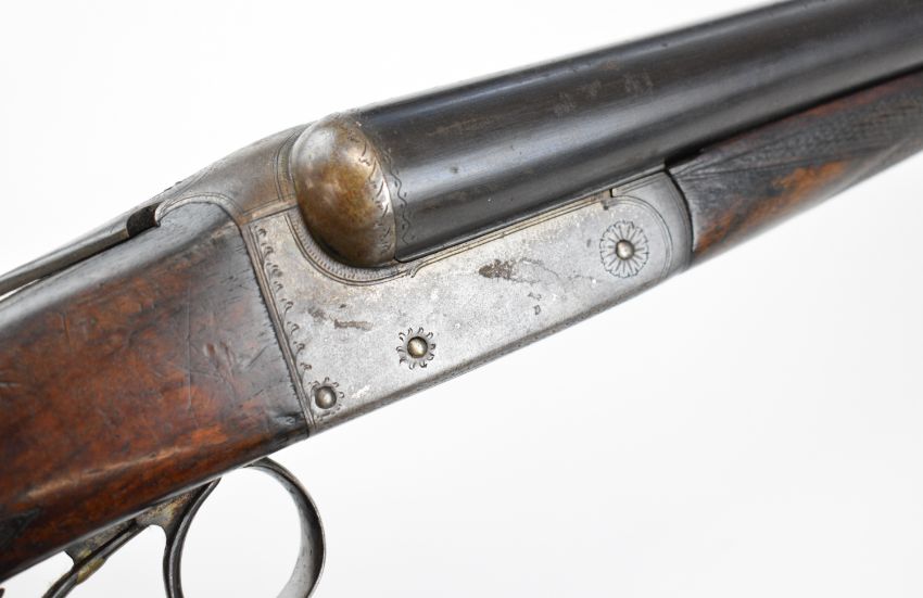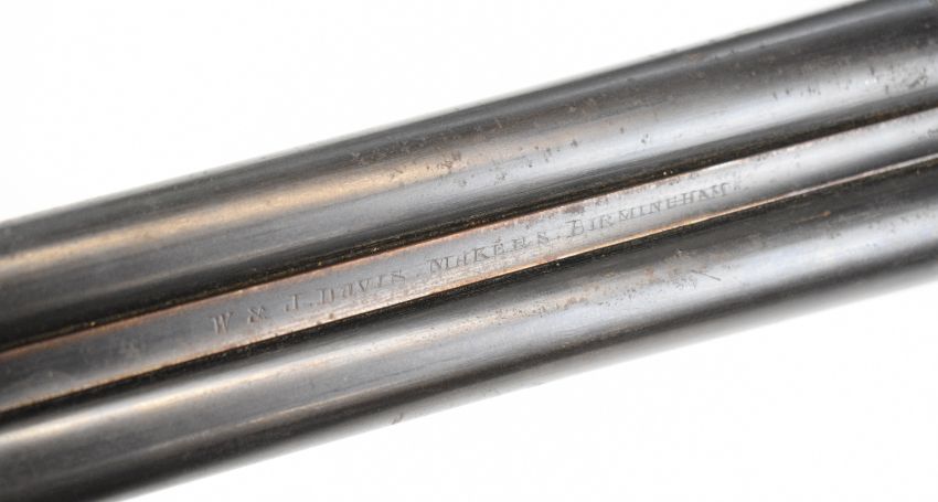 W & J Davis 12 bore side by side shotgun with line engraved locks, underside, trigger guard, top plate, thumb lever and fences, chequered semi-pistol grip and forend, vacant cartouche to the underside of the stock, double trigger and named 30 inch barrels choked ¾ and cylinder, overall length 118cm, length of pull 36.5cm, serial number 5806. PLEASE NOTE THAT A VALID RELEVANT SHOTGUN CERTIFICATE IS REQUIRED TO VIEW OR PURCHASE THIS LOT AND FOR ALL SHOTGUNS OR RIFLES PLEASE ENSURE YOU HAVE THE RELEVANT CERTIFICATE BEFORE BIDDING.