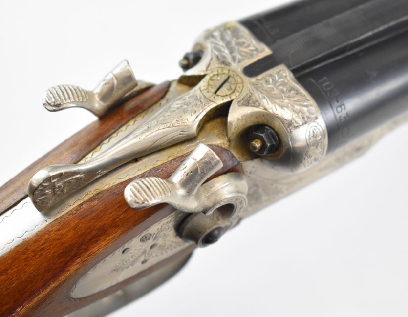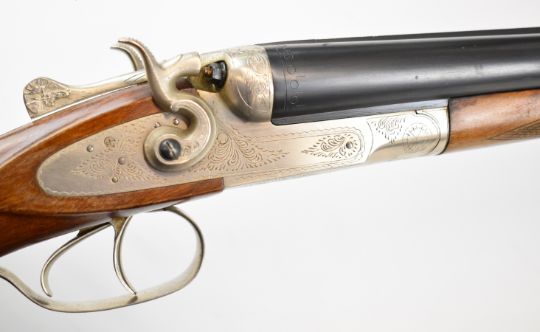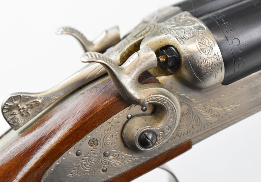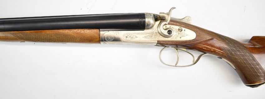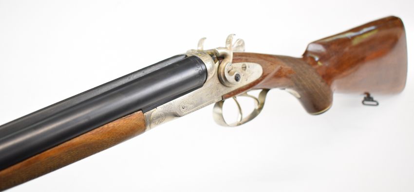 Toz 63 16 bore side by side hammer action shotgun with engraved locks, hammers, trigger guard, underside, thumb lever and fences, chequered semi-pistol grip and forend, sling mounts, double trigger and named 28.25 inch barrels, overall length 116cm, length of pull 38.5cm, serial number N165. PLEASE NOTE THAT A VALID RELEVANT SHOTGUN CERTIFICATE IS REQUIRED TO VIEW OR PURCHASE THIS LOT AND FOR ALL SHOTGUNS OR RIFLES PLEASE ENSURE YOU HAVE THE RELEVANT CERTIFICATE BEFORE BIDDING.