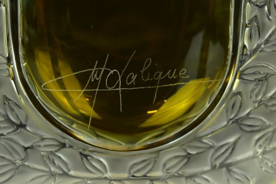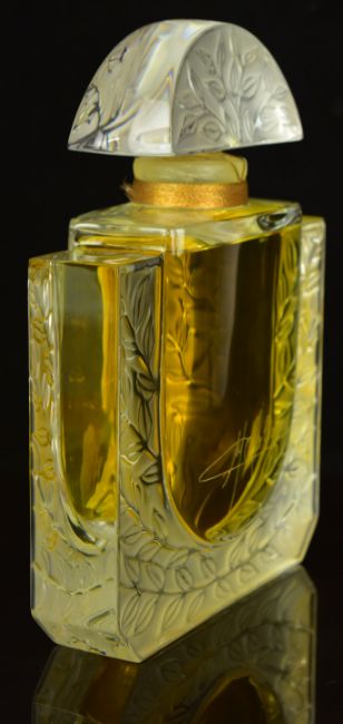 Lalique Splash Eau de Parfum in frosted and clear glass oversized scent bottle decorated with foliage, signed to the front and with original label to base, 26cm tall, 600ml.