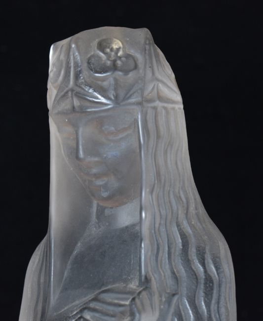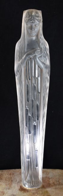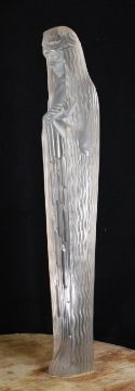 René Lalique (French 1860-1945) 'Alia; Source de la Fontaine' large frosted and polished glass statue, raised on a later wooden base. This model takes its name from the fountain Lalique designed for the 1925 Paris Exhibition, where approximately fifteen versions of this female figure made up the fountain, H59cm.