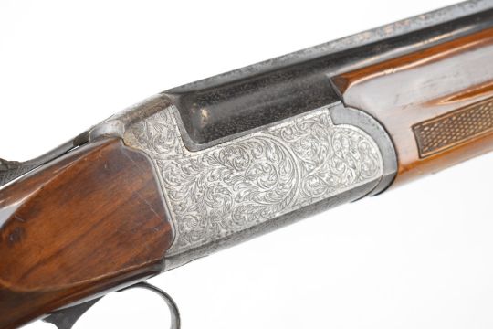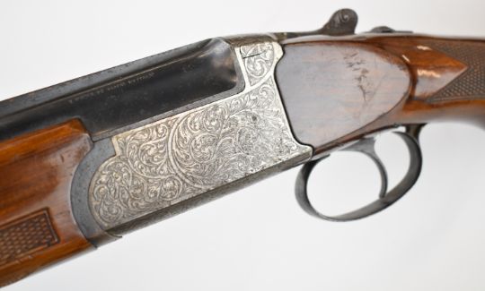 Lincoln 12 bore over and under ejector shotgun with engraved locks, underside, trigger guard, top plate and thumb lever, chequered semi-pistol grip and forend, single trigger, vented top and central ribs and 30 and 27.75 inch barrels, length of pull 35.5cm, serial number 17222/ 00124. PLEASE NOTE THAT A VALID RELEVANT SHOTGUN CERTIFICATE IS REQUIRED TO VIEW OR PURCHASE THIS LOT AND FOR ALL SHOTGUNS OR RIFLES PLEASE ENSURE YOU HAVE THE RELEVANT CERTIFICATE BEFORE BIDDING.