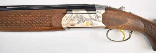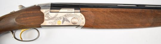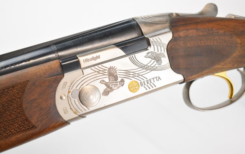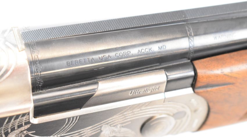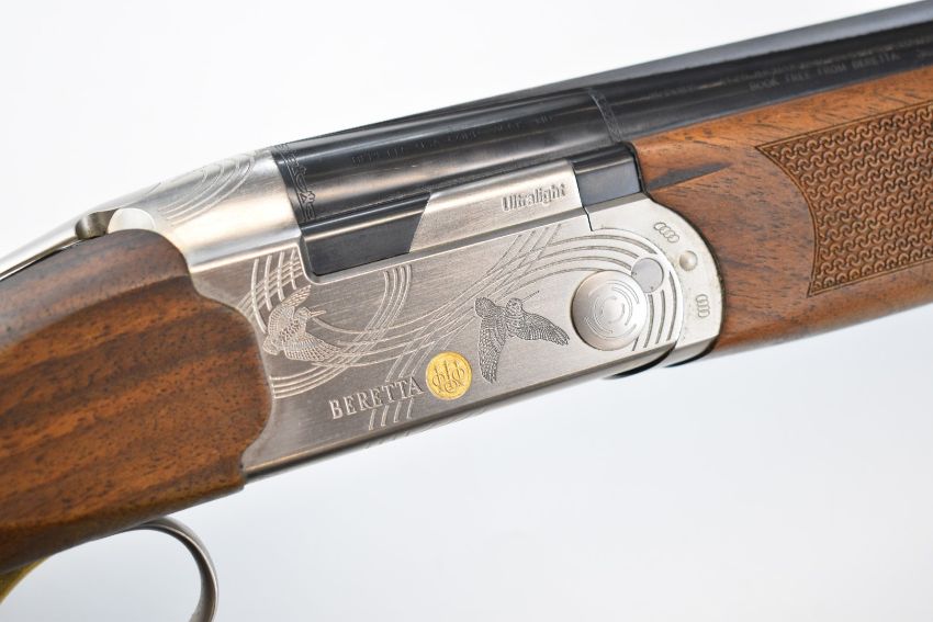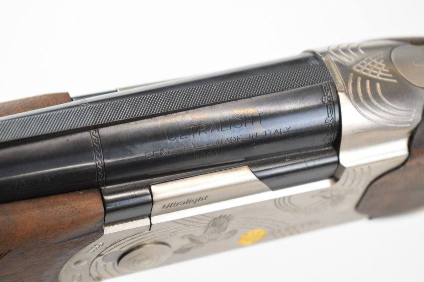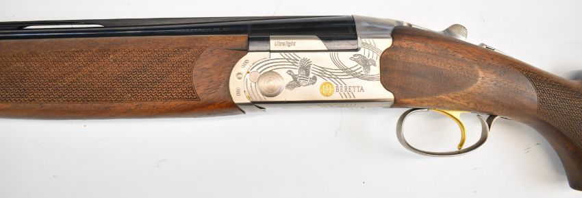 Beretta Ultra Light 12 bore over and under ejector shotgun with named and engraved locks and underside, engraved trigger guard, top plate and thumb lever, textured semi-pistol grip and forend, single trigger, vented top rib and 28 inch multi-choke barrels, overall length 113.5cm, length of pull 35cm, serial number R06513S, in original fitted case with three additional chokes, choke key, tags and related paperwork. PLEASE NOTE THAT A VALID RELEVANT SHOTGUN CERTIFICATE IS REQUIRED TO VIEW OR PURCHASE THIS LOT AND FOR ALL SHOTGUNS OR RIFLES PLEASE ENSURE YOU HAVE THE RELEVANT CERTIFICATE BEFORE BIDDING.