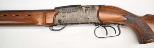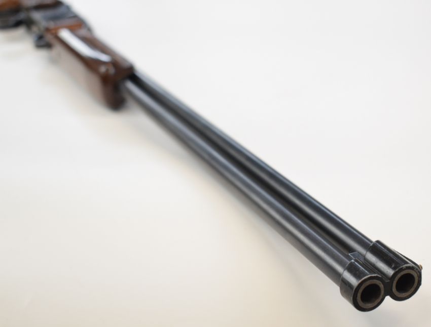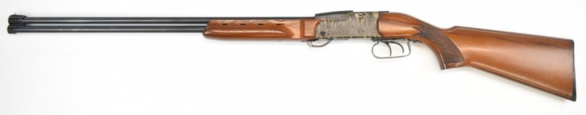 Manu-Arm .410 over and under shotgun with chequered semi-pistol grip, double trigger and 27 inch barrels, overall length 113.5cm, length of pull 36.5cm, serial number 29411. PLEASE NOTE THAT A VALID RELEVANT SHOTGUN CERTIFICATE IS REQUIRED TO VIEW OR PURCHASE THIS LOT AND FOR ALL SHOTGUNS OR RIFLES PLEASE ENSURE YOU HAVE THE RELEVANT CERTIFICATE BEFORE BIDDING.