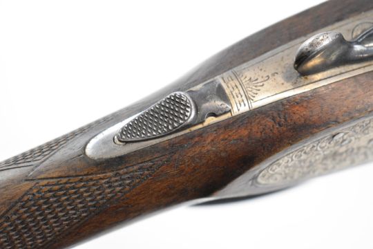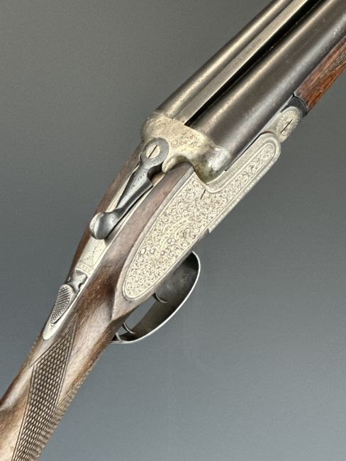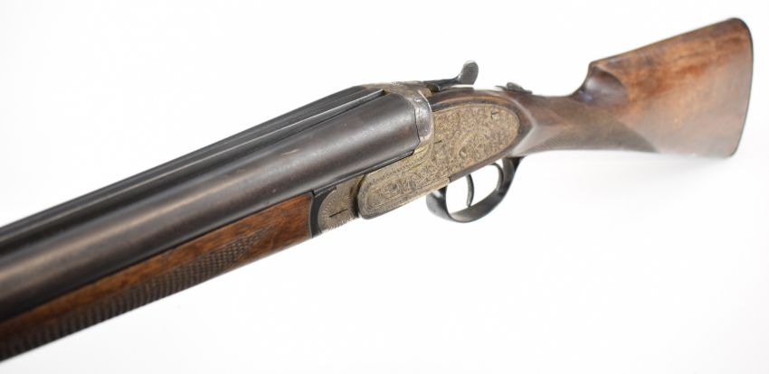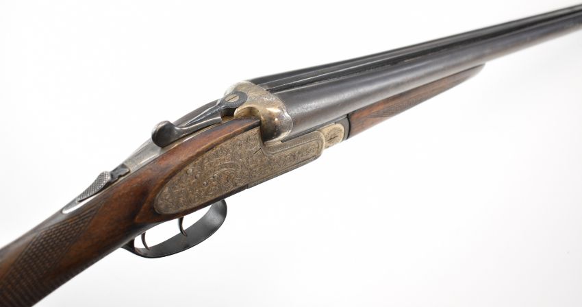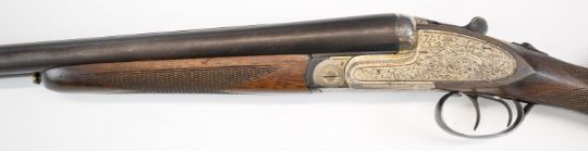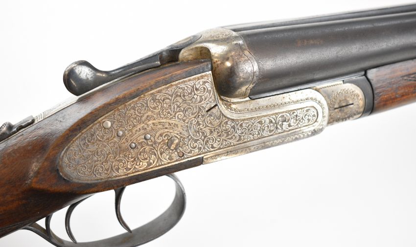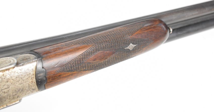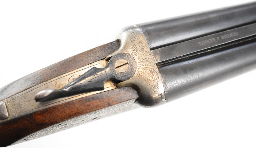 Denton & Kennel Silver Point 12 bore sidelock side by side ejector shotgun with named and engraved locks, engraved underside, trigger guard, top plate, thumb lever and fences, chequered grip and forend, vacant cartouche to the underside of the stock, double trigger and named 27.75 inch barrels choked ½ and ¼, overall length 113cm, length of pull 36cm, serial number 139573. PLEASE NOTE THAT A VALID RELEVANT SHOTGUN CERTIFICATE IS REQUIRED TO VIEW OR PURCHASE THIS LOT AND FOR ALL SHOTGUNS OR RIFLES PLEASE ENSURE YOU HAVE THE RELEVANT CERTIFICATE BEFORE BIDDING.