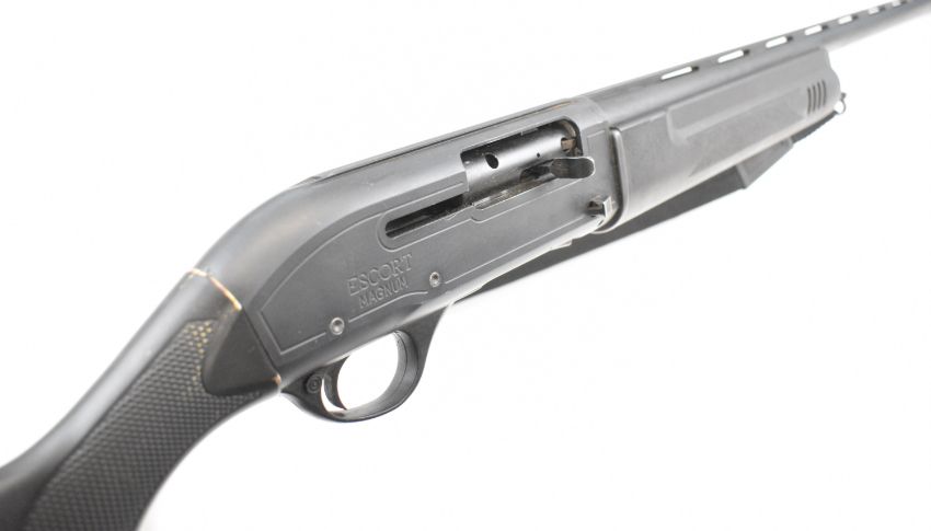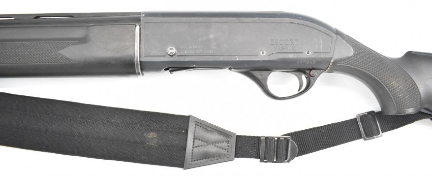 Hatsan Escort Magnum 12 bore 3-shot semi-automatic shotgun with composite stock, chequered semi-pistol grip and forend, vented rib and 30 inch multi choke barrel, overall length 127cm, length of pull 36cm, serial number 090345. PLEASE NOTE THAT A VALID RELEVANT SHOTGUN CERTIFICATE IS REQUIRED TO VIEW OR PURCHASE THIS LOT AND FOR ALL SHOTGUNS OR RIFLES PLEASE ENSURE YOU HAVE THE RELEVANT CERTIFICATE BEFORE BIDDING.
