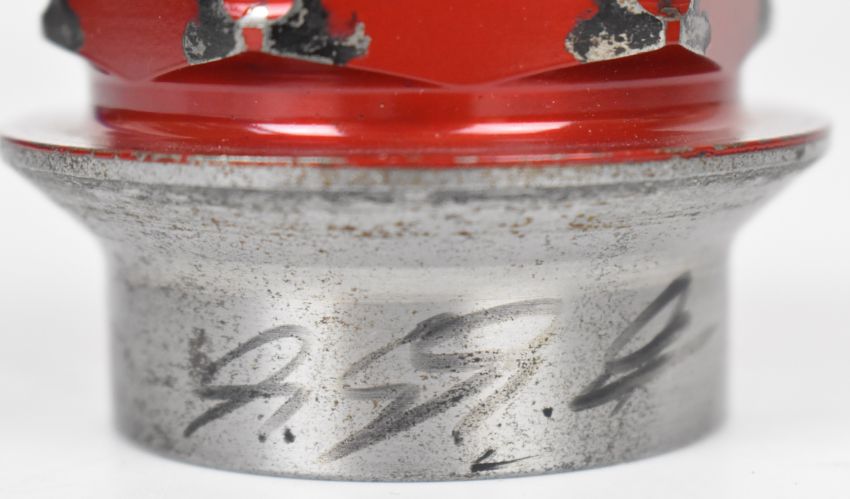 Michael Schumacher signed Formula 1 racing car wheel nut, autographed to the bottom collar in black ink.