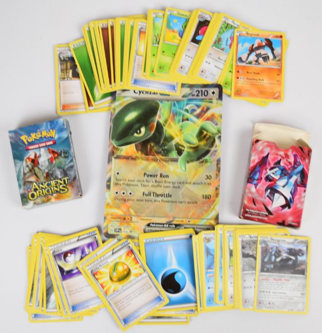 A collection of mostly modern Pokémon cards from Sword & Shield, Diamond & Pearl, Astral Radiance and X/Y sets, contained four collectors tins and boxes.