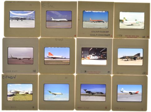 Terence Burke Collection approximately 600 35mm colour aviation slides, labelled by Mr Burke as bought/donated/swap, circa 1980's to 2000's, one carousel box labelled 1976 Germany Bonn, Berlin Frankfurt, another marked 1972 Rangoon 1973 S..E. of W.A Perth, Australia, the other three carousels to include many labelled slides, names include Pete Sansom America, H.U. Oehninger Switzerland, Nigel P Chalcraft H.W. Klein and George W. Hamlin, mostly civil but including some military subjects, five Hanimex Rondex carousels. Please see lot 1055 for a short history of Terence Burke and his aviation photography