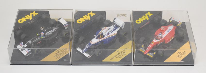 Twenty three Onyx diecast model Formula 1 racing cars, the majority being from the F1 '90 Collection, drivers to include Mansell, Senna, Prost, Alesi, Piquet, Patrese and Barilla, all in original Perspex display boxes.