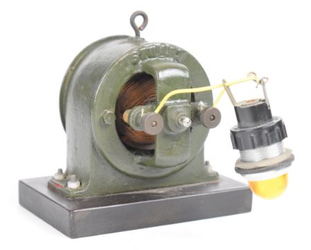 Stuart dynamo to suit live steam or similar engine, marked rpm 3000 V 4 A 1, height 9.5cm