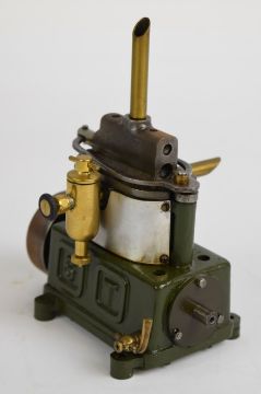Stuart Sun twin cylinder enclosed live steam engine with displacement lubricator and turned solid flywheel, overall length 12cm
