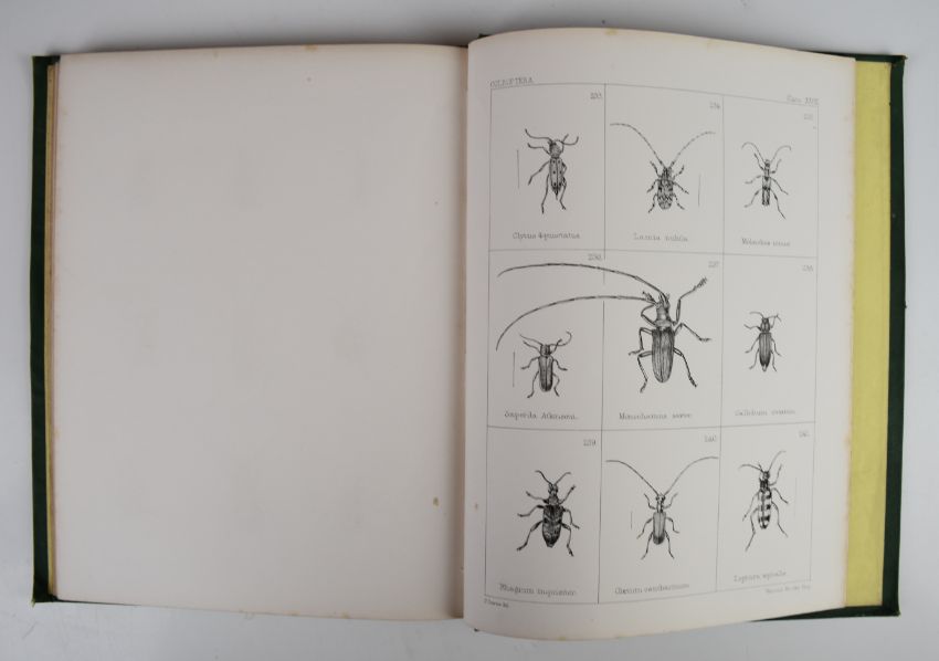 British Beetles Transfered From Curtis’s British Entomology with Descriptions by E.W. Janson, published Bell & Daldy 1863, first edition with twenty nine plates (complete) containing 259 examples of beetles, bound in gilt lettered cloth