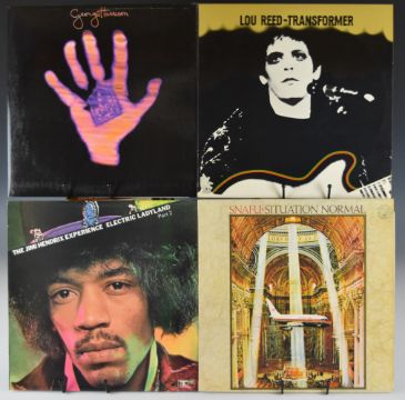 Seven Psych Rock / Rock LPs comprising Jimi Hendrix Electric Ladyland Pts 1 & 2 and War Heroes, Snafu Situation Normal, Lou Reed Transformer and George Harrison Living In The Material World. Vinyl generally appears Ex to NM