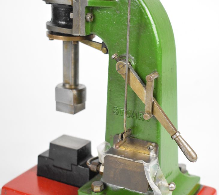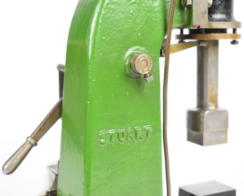 Stuart live steam forge hammer with side lever control, on aluminium base, believed built by H.T. Walker, overall height 29cm