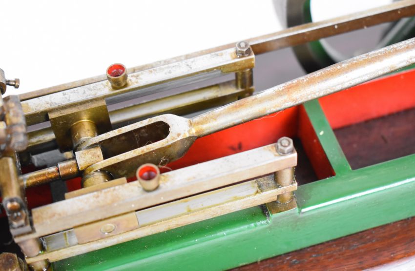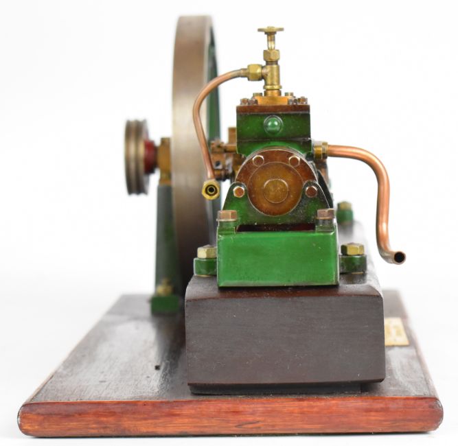 Stuart Victoria live steam single cylinder mill engine, on wooden base, overall length 40cm