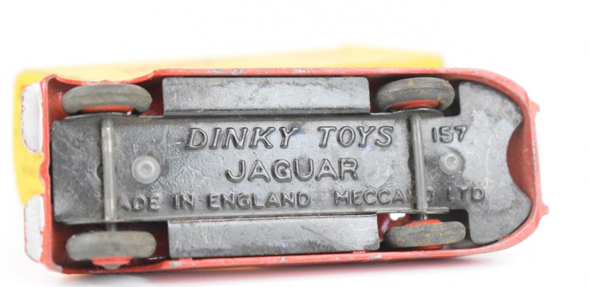 Three Dinky Toys diecast model sports cars comprising Jaguar XK120 Coupe 157, Bristol 450 Sports 163 and Porsche 356A 182, all in original boxes, the Porsche box marked with a blue colour indicator.