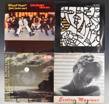 Approximately seventy five Indie Rock / New Wave / Post Punk / New Romantic 12" singles including Blur For Tomorrow and To The End, The La's There She Goes, Edwyn Collins A Girl Like You, Exotica Maximus Paint It Black, Echo & The Bunnymen The Killing Moon, The Doves I Wouldn't Know You From The Rest, Duran Duran, Depeche Mode, Enigma, Flock of Seagulls, China Crisis, Kraftwerk, Cyndi Lauper, Blondie, Boy George, The Associates, Altered Images, ABC, Aztec Camera, Billy Bragg, Blue Aeroplane, Bow Wow Wow, The Big Supreme, The Clash, Flood, Ian Dury etc. Condition generally appears Ex to NM