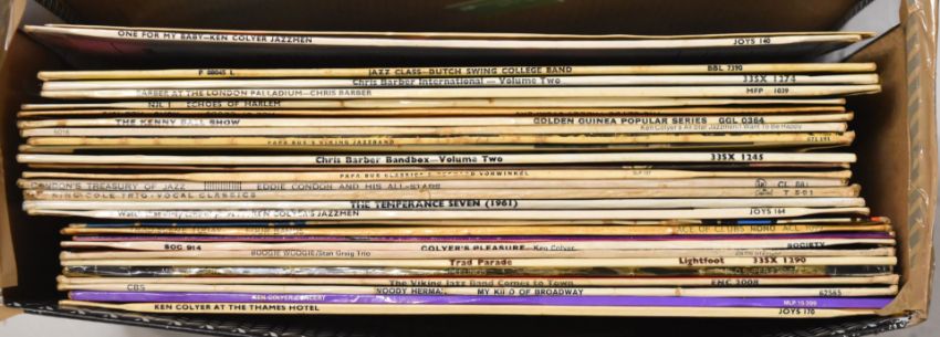 Approximately twenty nine Jazz LPs, mostly very early releases including Steve Allen, Ken Colyer, Temperance Seven, King Cole Trio, Eddie Condon, Papa Bue, Clyde Valley Stompers, Chris Barber, Viking Jazz Band, Stan Greig Trio, Terry Lightfoot, Milt Jackson, Woody Herman etc