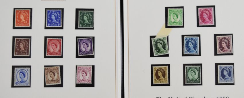 A mostly Queen Elizabeth II collection of GB and Isle of Man first day covers, mint Queen Elizabeth II stamps in Harrington & Byrne folders with certificates, one Harrington & Byrne folder with Victorian used issues, 1d red and Jubilee, one Harrington & Byrne folder with King George V seahorses used to 10s/ and one Harrington & Byrne folder with King George VI imperf geniality set M