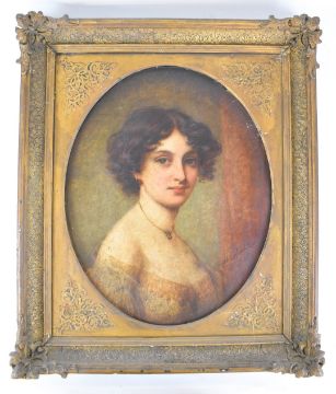 Alfred Hitchens Corbould (1852-1920) oil on canvas portrait of a woman, signed and dated lower right, maximum diameter 56cm, in period ornate gilt frame