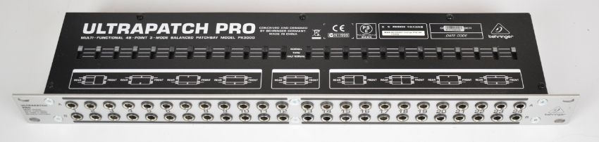 Behringer home studio recording equipment comprising C-2 Studio Condenser Microphones, Ultrapatch Pro PX3000, Miniamp AMP800 headphone amplifier and U-Phoria UMC 404HD, all with manuals and in original boxes.