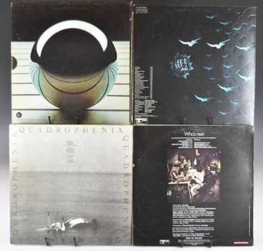 Four The Who Rock / Mod LPs comprising Who's Next (Track 2408 102) with booklet, Quadrophenia (Track 2406-110) with booklet, Tommy (Track 613013) with lyric booklet and Tommy two LP hardcover box set with embossed gatefold and book. Vinyl generally appears VG+ to Ex+
