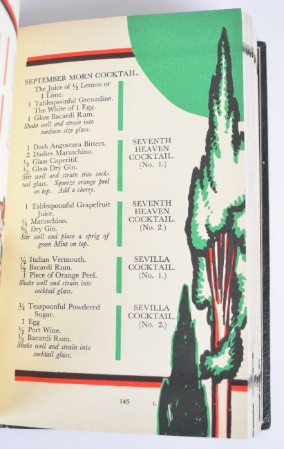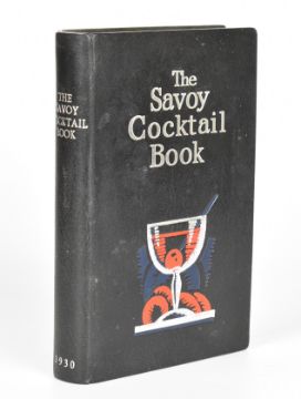 [Fine Binding] The Savoy Cocktail Book compiled by Harry Craddock of The Savoy Hotel London with Decorations by Gilbert Rumbold, published Constable & Co.1930 first edition, decorated in colours throughout in the Art Deco style, this copy finely bound by The Chelsea Bindery in full black Morocco, lettered and decorated in silver and red