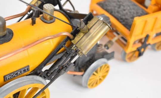 Hornby Stephensons Rocket 3½ inch gauge live steam locomotive, in original box, together with matching carriage, also in original box and a quantity of extra track, length of locomotive and tender 42cm