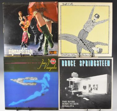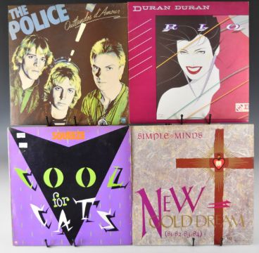 Approximately fifty five Post Punk / Pop / Rock LPs including Simple Minds, Squeeze, Duran Duran, ELO, Phil Collins, Stevie Nicks, Dire Straits, Jo Boxers, two Police, Leo Sayer, Bruce Springsteen, Vangelis, The Who, Soft Cell, David Bowie, Queen, Monsoon, Ultravox, Roxy Music, Shit & Chanel, Sandy Nelson, Eurythmics, five Fleetwood Mac, Genesis, Billy Joel, Eric Clapton etc. Vinyl generally appears VG+ to Ex+