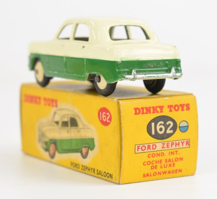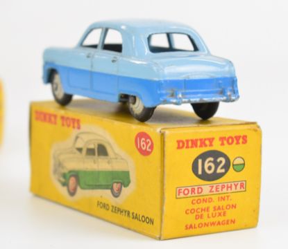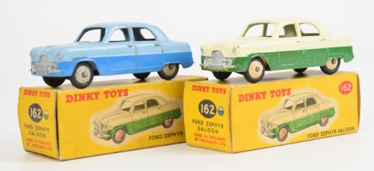 Two Dinky Toys diecast model Ford Zephyr Saloon cars in two-tone blue and green/cream paintwork, 162, both in original boxes.