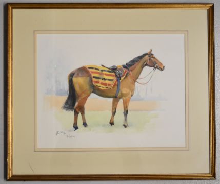 Peter Curling (Irish, born 1955) watercolour of a racehorse 'Aherlow', signed and titled lower left, 34 x 44cm, in gilt frame