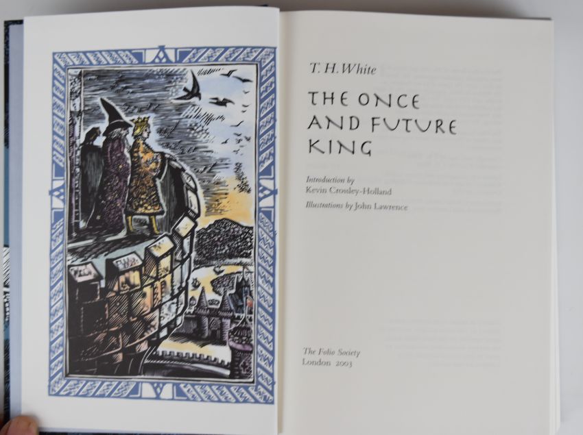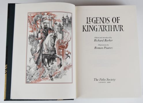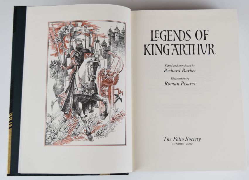 [Folio Society] Legends of King Arthur illustrated Roman Pisarev, in leather backed illustrated cloth, Legends of The Grail (factory sealed), in leather backed illustrated cloth, The Once & Future King by T.H. White with illustrations by John Lawrence 2003, in colour pictorial cloth, all in slipcases (3)