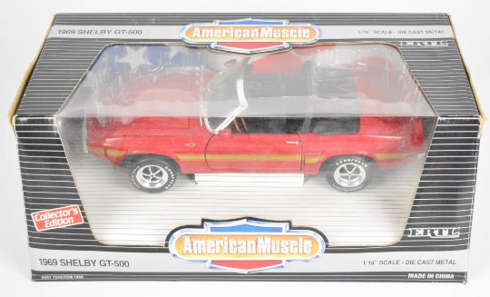 Eight Ertl Collectibles 'American Muscle' 1:18 scale diecast model cars to include 1935 Auburn, 1959 Chevrolet Bel Air, 1969 Shelby GT-500, 1967 Corvette L-88, and 1996 Chevrolet Camaro Z28, all in original boxes.
