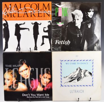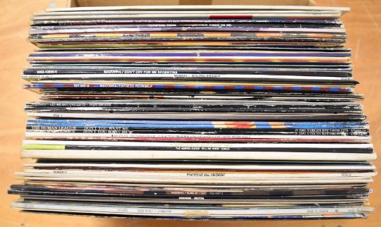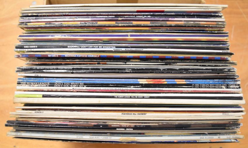 Approximately eighty five Post Punk / New Wave / New Romantics 12" singles including Madonna, Heaven 17, Debbie Harry, Sparks, Human League, Ultravox, Malcolm McLaren, Visage, Talk Talk, Tears For Fears, Thompson Twins, Spoons, Spandau Ballet, Soft Cell etc. Condition generally appears VG+ to Ex+