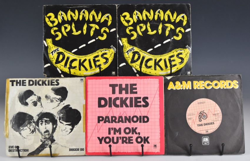 Approximately sixty two 7" singles Punk Rock/Indie Rock/Post Punk/New Wave including The Slits Typical Girls, The Cure A Forest, Killing Joke War Dance, Joy Division Love Will Tear Us Apart and Transmission, New Order Temptation and Procession, The Clash Cost of Living EP, Cramps Kizmiaz, OMD Electricity, Dickies Manny Moe & Jack (and several other Dickies singles), The Ruts In A Rut and Jah War, Dead Kennedys, Revillos, The Members, Skids, Devo, Magazine, several Gang of Four, Animation, PiL, Ramones, Generation X, Stranglers, Buzzcocks etc. Vinyl appears VG+ to Ex+ in the main