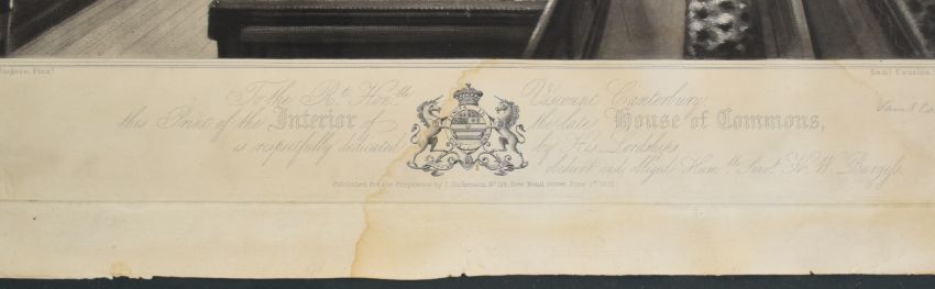 Samuel Cousins, after Henry Burgess proof etching Interior of the House of Commons, published June 1st 1835, 70 x 50cm, in part gilt frame