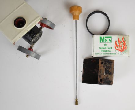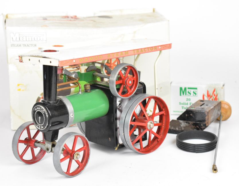 Mamod TE1A live steam traction engine, with steering extension rod and accessories