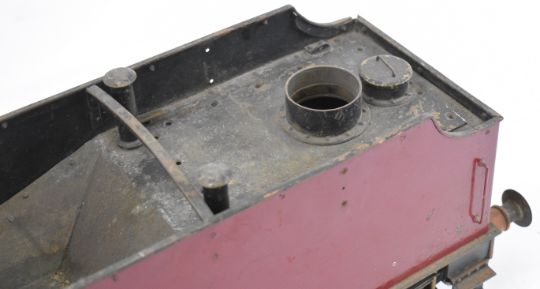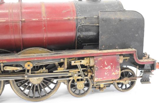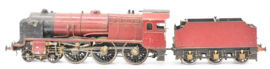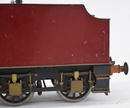 Henry Greenly 3½ inch gauge LMS Royal Scot live steam locomotive, with coal fired copper boiler fed by twin injectors and axle pump, the backhead fitted with water gauge glass, Bassett-Lowke 0-100psi pressure gauge and wheel operated reversing gear connected to Walschaerts valve gear on the twin outside cylinders, with cab operated cylinder drain cocks, the locomotive and six wheel tender all being fully sprung, overall length 125cm