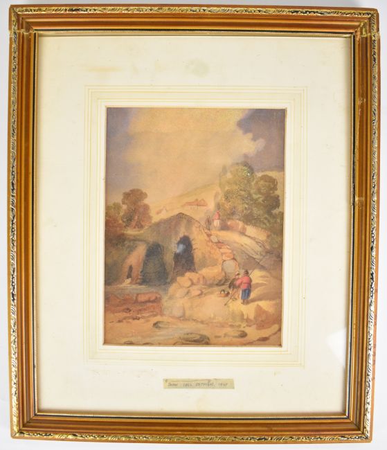 Attributed to John Sell Cotman (1782-1842) watercolour landscape bridge over a river with cottages beyond, 24.5 x 18.5cm, in gilt frame with artist's name to mount and verso