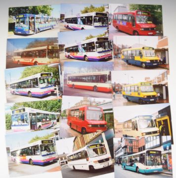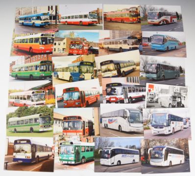 Railway, aviation, bus and car postcards and photographs including Great Western steam locomotives, diesel locomotives, veteran and vintage cars, lorries and buses including First, Stagecoach, Arriva and Lancashire United