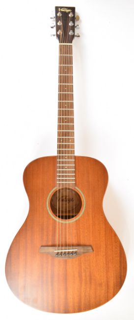 Vintage V300MH solid top mahogany acoustic guitar with rosewood fingerboard and chrome tuners