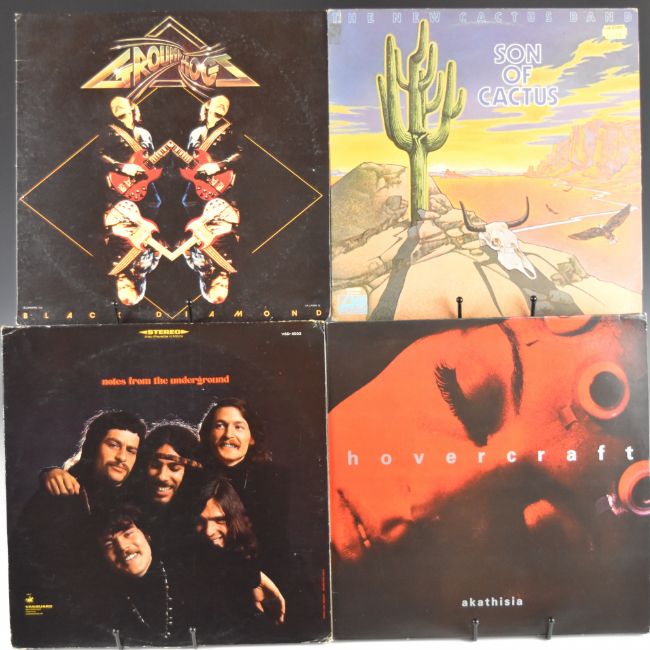 Collection of thirty one rare and oddball Rock / Hard Rock / Blues Rock / Punk / Post Punk LPs, eighteen being USA imports to include Chapter Three, Like A Song, Relation, Petra Akathisia, Notes From The Underground, The New Cactus Band, Groundhog, Kansas, Fireballet, Elvis Costello Seventh Wave, Gamma 2, Michele, Drive She Said, Trevor Rabin, Ventures, Parchment, Le Roux, Bighorn, Taxxi, Shine, Blue Steel, Bullseye, Frankie & The Knockouts, Silent Running etc. Vinyl generally appears VG+ to Ex, some are still in shrink wrap
