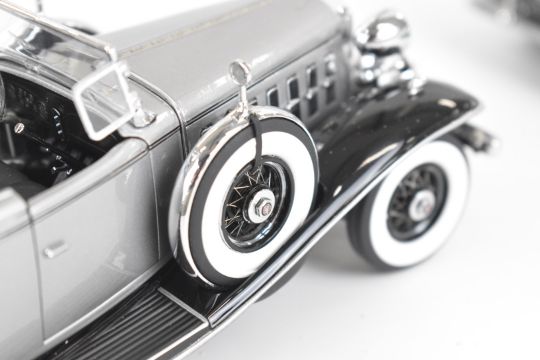 Three 1:24 scale diecast American classic cars comprising Franklin Mint Ford Fairlane 500 Skyliner 1957, Danbury Mint Chevrolet Impala 1958 and Cadillac V-16 Sport Phaeton 1932, all in original boxes.