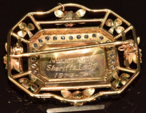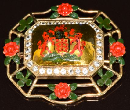A 9ct gold Gloucester coat of arms brooch set with enamel, 15g, 4 x 3.8cm