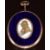 Regency gold pendant locket set with a silhouette of George III in later life, within a blue enamel border and verso a locket compartment, 31.8g, 7 x 4.7cm