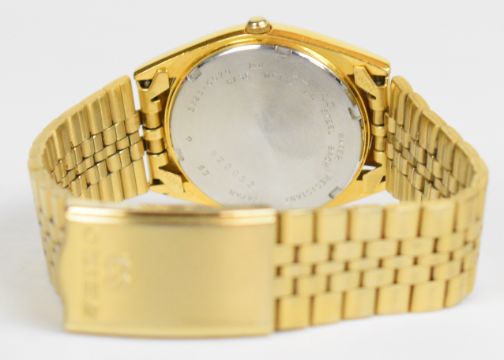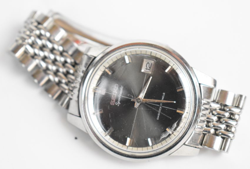 Four Seiko watches comprising Sportsmatic ref. 7625-8041 with date aperture, grey dial, silver inner bezel, stainless steel case and 17 jewel calibre 7625 movement, on stainless steel bracelet, case diameter 37mm, serial number 6101712, SX with gold dial, SQ with white dial and a pendant watch, in ten watch display case.