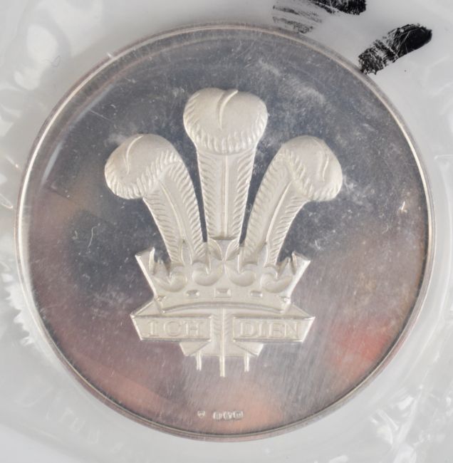 A cased silver HRH Prince of Wales Investiture silver commemorative coin medal, with certificate, 112g