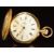 H Samuel 18ct gold keyless winding half hunter pocket watch with blued centre seconds hand, gold hour and minutes hands, black Roman numerals, white dial, inlaid blue enamel Roman numerals to the case and signed movement, case diameter 54mm, serial number 35129, 123.5g.